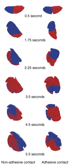 ![]() Figure 4. Case 2: Comparison of the mixing process for nonadhesive and adhesive