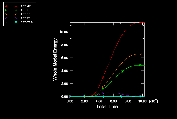 ![]() Figure 3. Energy history for forming analysis: 15 m/s peak velocity of
