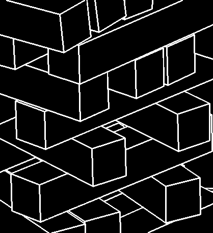 ![]() Figure 3. Close-up view of the collapsing blocks after 0.1125 s.