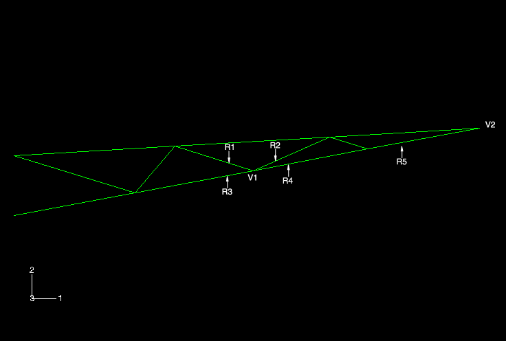 Figure 1 shows the geometry of the truss structure. Figure 1. Locations where beam normals should be specified.