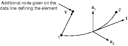 ![]() The -direction is always (0.0, 0.0, −1.0) for two-dimensional beam elements. For three-dimensional beam elements there are several ways to define the orientation of the local beam section axes. The first is to specify an extra node on the data line defining the element (this method requires manually editing the input file created by Abaqus/CAE). The vector, , from the first node in the beam element to this additional node (see Figure 1), is used initially as an approximate -direction. Abaqus then defines the beam's -direction as . Having determined , Abaqus defines the actual -direction as . This procedure ensures that the local tangent and local beam section axes form an orthogonal system. Alternatively, you can give an approximate -direction when you define the beam section properties in Abaqus/CAE. Abaqus then uses the procedure described above to calculate the actual beam section axes. If you specify both an extra node and an approximate -direction, the additional node method takes precedence. Abaqus uses the vector from the origin to the point (0.0, 0.0, −1.0) as the default -direction if you provide no approximate -direction. There are two methods that can be used to override the -direction defined by Abaqus; both require editing the input file manually. One is to give the components of as the 4th, 5th, and 6th data values following the nodal coordinates. The alternative is to specify the normal direction directly with the NORMAL option (this option can be added using the Abaqus/CAE Keywords Editor). If both methods are used, the latter takes precedence. Abaqus again defines the -direction as . The -direction that you provide need not be orthogonal to the beam element tangent, . When you provide the -direction, the local beam element tangent is redefined as the value of the cross product . It is quite possible in this situation that the redefined local beam tangent, , will not align with the beam axis, as defined by the vector from the first to the second node. If the -direction subtends an angle greater than 20° with the plane perpendicular to the element axis, Abaqus issues a warning message in the data file. The example presented in Example: cargo crane, explains how to assign the beam cross-section orientation using Abaqus/CAE. |