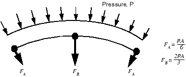 Figure 1. Equivalent nodal loads for a constant pressure on a two-dimensional, second-order element.