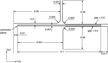 ![]() The blank is 1 mm thick and is squeezed between the blank holder and the die. The blank holder force is 440 kN. This force, in conjunction with the friction between the blank and blank holder and the blank and die, controls how the blank material is drawn into the die during the forming process. You have been asked to determine the forces acting on the punch during the forming process. You also must assess how well the channel is formed with these particular settings for the blank holder force and the coefficient of friction between the tools and blank. A two-dimensional, plane strain model will be used. The assumption that there is no strain in the out-of-plane direction of the model is valid if the structure is long in this direction. Only half of the channel needs to be modeled because the forming process is symmetric about a plane along the center of the channel. The model will use contact pairs rather than general contact, since general contact is not available for analytical rigid surfaces in Abaqus/Standard. The dimensions of the various components are shown in Figure 2. Figure 2. Dimensions, in m, of the components in the forming simulation.