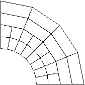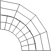In subsequent steps any nodal adjustments to remove initial overclosures cause strains that often cause severe mesh distortions because the entire nodal adjustments occur in a single, very brief increment. This is especially true when the kinematic constraint method is used. For example, if a node is overclosed by 1.0 × 10−3 m and the increment time is 1.0 × 10−7 s, the acceleration applied to the node to correct the overclosure is 2.0 × 1011 m/s2. Such a large acceleration applied to a single node typically will cause warnings about deformation speed exceeding the wave speed of the material and warnings about severe mesh distortions a few increments later, once the large acceleration has deformed the associated elements significantly. Even a very slight initial overclosure can induce extremely large accelerations for kinematic contact. In general, it is important that in the second step and beyond any new contact surfaces that you define are not overclosed. Figure 1 shows a common case of initial overclosure of two contact surfaces. All of the nodes on the contact surfaces lie exactly on the same arc of a circle; but since the mesh of the inner surface is finer than that of the outer surface and since the element edges are linear, some nodes on the finer, inner surface initially penetrate the outer surface. Figure 1. Original overclosure of two contact surfaces.