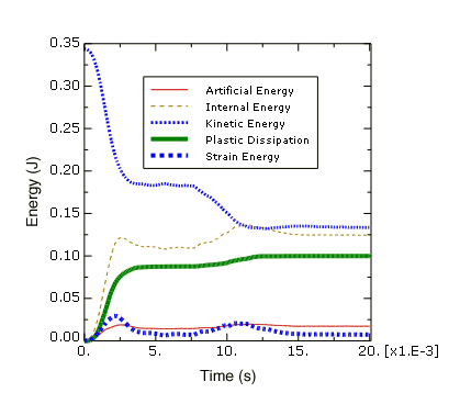 Plot graphs of various energy variables versus time. Energy output can help you evaluate whether an Abaqus/Explicit simulation is predicting an appropriate response.