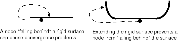 Figure 1. Extending rigid surfaces to prevent convergence problems.