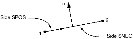 Using single-sided surfaces, you specify which side of the element forms the contact surface. The side in the direction of the positive element normal is called SPOS, while the side in the direction of the negative element normal is called SNEG, as shown in Figure 1. The connectivity of an element defines the positive element normal, as discussed in Using Shell Elements. The positive element normals can be viewed in Abaqus/CAE.