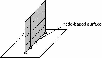 Edge-based surfaces consider contact on the perimeter edges of the model. They can be used to model contact on a shell edge, for example. Alternatively, node-based surfaces, which define contact between a set of nodes and a surface, can be used to achieve the same effect, as shown in Figure 2.