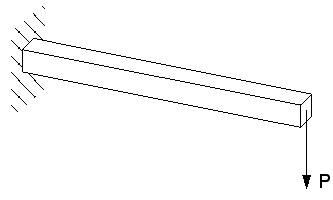 The cantilever beam is shown in Figure 1. Since the beam is relatively slender, we would normally model it with beam elements. However, it is used here to help assess the effectiveness of various solid elements. Figure 1. Cantilever beam under a point load P at its free