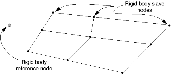 Figure 1 shows a rigid body. The shape of the rigid body is defined either as an analytical surface obtained by revolving or extruding a two-dimensional geometric profile or as a discrete rigid body obtained by meshing the body with nodes and elements. The shape of the rigid body does not change during a simulation but can undergo large rigid body motions. The mass and inertia of a discrete rigid body can be calculated based on the contributions from its elements, or they can be assigned directly. Figure 1. Elements forming a rigid body.
