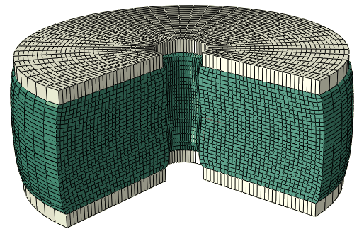 Figure 3. Deformed model shape of the rubber under an applied load of 5500 N (mirrored/swept image).