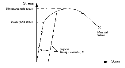 Figure 1. Stress-strain curve for an elastic-plastic material under uniaxial tension.