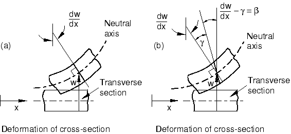 Figure 1. Behavior of transverse shell sections in (a) thin shells and (b) thick shells.