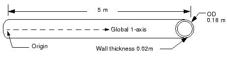 The pipe is made of steel and has an outer diameter of 18 cm and a 2 cm wall thickness (see Figure 1). Figure 1. Portion of piping system being analyzed.