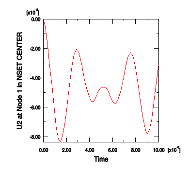 Context: Plot the deformed shape of the model. For large-displacement analyses (the default formulation in Abaqus/Explicit) the displaced shape scale factor has a default value of 1. Change the Deformation Scale Factor to 20 so that you can more easily see the deformation of the truss. Create a time-history animation of the deformed model shapeCreate an X–Y plot of the vertical displacement for a nodeContext: The truss responds dynamically to the load. You can confirm this by plotting the vertical displacement history of the node set Center. You can create X–Y curves from either history or field data stored in the output database (.odb) file. X–Y curves can also be read from an external file or they can be typed into the Visualization module interactively. Once curves have been created, their data can be further manipulated and plotted to the screen in graphical form. In this example you will create and plot the curve using history data.
