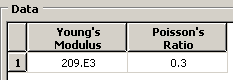 Type a value of 209.E3 MPa for Young's modulus and a value of 0.3 for Poisson's ratio in the respective fields, as shown in Figure 2. Use Tab to move between cells. Figure 2. Entering data values for the elastic material properties.