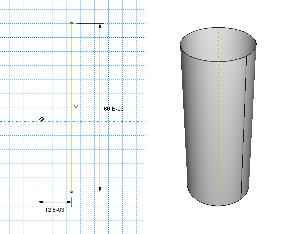 Dimension the horizontal distance from the line to the axis, and change the distance to 0.012.