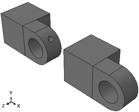 Abaqus/CAE closes the dialog box, creates the new dependent instance, and applies an offset along the X-axis that separates the two hinges, as shown in Figure 1. (For clarity the datum geometry has been removed from the shaded view in Figure 1 and subsequent figures by selecting .)