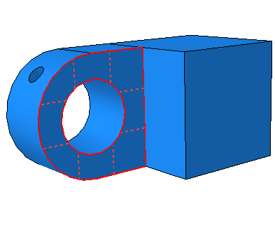 Create a surface called Inside-h that includes the cylindrical inner surface of the hinge piece with the lubrication hole, as shown in Figure 2. (You may need to zoom in on the view to select this face.)