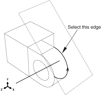 sketched hole profile, and an arrow indicating the direction for the extruded