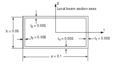 Context: A box-section is shown in Figure 1. The dimensions shown in Figure 1 are for the main members of the two trusses in the crane. The dimensions of the beam sections for the bracing members are shown in Figure 2. Figure 1. Cross-section geometry and dimensions (in m) of the main members.