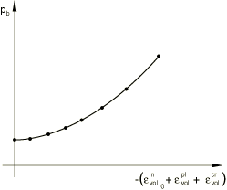 ![]() The yield surface is defined so that K is the ratio of the yield stress in triaxial tension to the yield stress in triaxial compression. implies that the yield surface is the von Mises circle in the deviatoric principal stress plane (the -plane), so that the yield stresses in triaxial tension and compression are the same; this is the default behavior in Abaqus/Standard and the only behavior available in Abaqus/Explicit. To ensure that the yield surface remains convex requires . Cap yield surfaceThe cap yield surface has an elliptical shape with constant eccentricity in the meridional (p–t) plane (Figure 1) and also includes dependence on the third stress invariant in the deviatoric plane (Figure 2). The cap surface hardens or softens as a function of the volumetric inelastic strain: volumetric plastic and/or creep compaction (when yielding on the cap and/or creeping according to the consolidation mechanism, as described later in this section) causes hardening, while volumetric plastic and/or creep dilation (when yielding on the shear failure surface and/or creeping according to the cohesion mechanism, as described later in this section) causes softening. The cap yield surface is where is a material parameter that controls the shape of the cap, is a small number that we discuss later, and is an evolution parameter that represents the volumetric inelastic strain driven hardening/softening. The hardening/softening law is a user-defined piecewise linear function relating the hydrostatic compression yield stress, , and volumetric inelastic strain (Figure 3): Figure 3. Typical Cap hardening.
