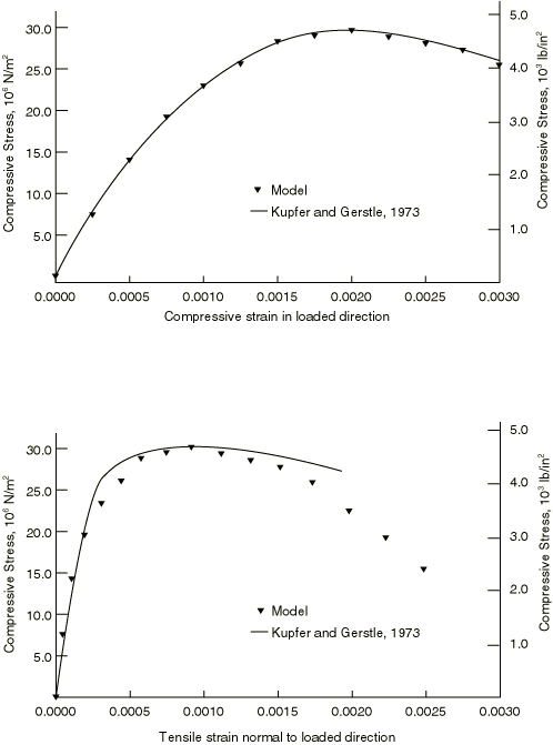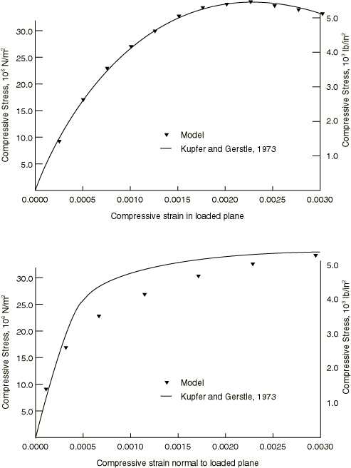 • is designed for applications in which the concrete is subjected to essentially monotonic straining at low confining pressures;