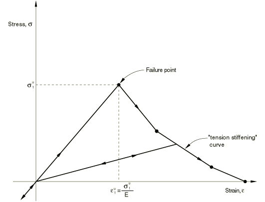 • uses oriented damaged elasticity concepts (smeared cracking) to describe the reversible part of the material's response after cracking failure;