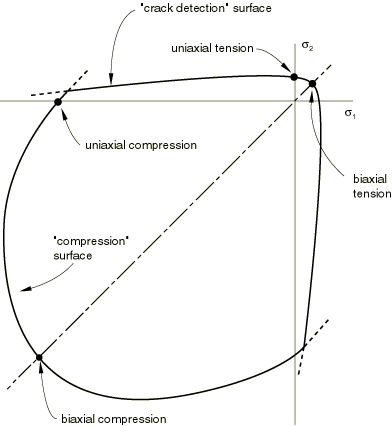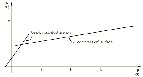 • consists of an isotropically hardening yield surface that is active when the stress is dominantly compressive and an independent “crack detection surface” that determines if a point fails by cracking;