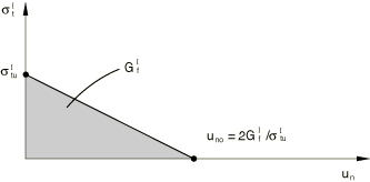 ![]() Alternatively, the Mode I fracture energy, , can be specified directly as a material property; in this case, define the failure stress, , as a tabular function of the associated Mode I fracture energy. This model assumes a linear loss of strength after cracking (Figure 3). Figure 3. Postfailure stress-fracture energy curve.