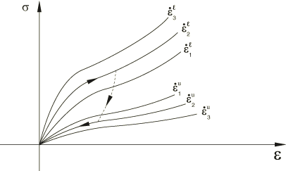 ProductsAbaqus/ExplicitAbaqus/CAE Mechanical responseLow-density, highly compressible elastomeric foams are widely used in the automotive industry as energy absorbing materials. Foam padding is used in many passive safety systems, such as behind headliners for head impact protection, in door trims for pelvis and thorax protection, etc. Energy absorbing foams are also commonly used in packaging of hand-held and other electronic devices. The low-density foam material model in Abaqus/Explicit is intended to capture the highly strain-rate sensitive behavior of these materials. The model uses a pseudo visco-hyperelastic formulation whereby the strain energy potential is constructed numerically as a function of principal stretches and a set of internal variables associated with strain rate. By default the Poisson's ratio of the material is assumed to be zero. With this assumption, the evaluation of the stress-strain response becomes uncoupled along the principal deformation directions. Optionally, nonzero Poisson effects can be specified to include coupling along the principal directions. The model requires as input the stress-strain response of the material for both uniaxial tension and uniaxial compression tests. Poisson effects can be included by also specifying lateral strain data for each of these tests. The tests can be performed at different strain rates. For each test the strain data should be given in nominal strain values (change in length per unit of original length), and the stress data should be given in nominal stress values (force per unit of original cross-sectional area). Uniaxial tension and compression curves are specified separately. The uniaxial stress and strain data are given in absolute values (positive in both tension and compression). On the other hand, when specified, the lateral strain data must be negative in tension and positive in compression, corresponding to a positive Poisson's effect. The model does not support negative Poisson's effect. Rate-dependent behavior is specified by providing the uniaxial stress-strain curves for different values of nominal strain rates. Both loading and unloading rate-dependent curves can be specified to better characterize the hysteretic behavior and energy absorption properties of the material during cyclic loading. Use positive values of nominal strain rates for loading curves and negative values for the unloading curves. Currently this option is available only with linear strain rate regularization (see Regularization of strain-rate-dependent data in Abaqus/Explicit). When the unloading behavior is not specified directly, the model assumes that unloading occurs along the loading curve associated with the smallest deformation rate. A representative schematic of typical rate-dependent uniaxial compression data is shown in Figure 1 with both loading and unloading curves. It is important that the specified rate-dependent stress-strain curves do not intersect. Otherwise, the material is unstable, and Abaqus issues an error message if an intersection between curves is found. Figure 1. Rate-dependent loading/unloading stress-strain curves.