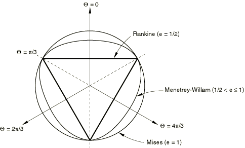 ![]() Figure 4. Menétrey-Willam flow potential in the deviatoric stress plane.