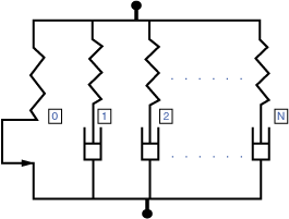 • consists of multiple viscoelastic networks and, optionally, an elastoplastic network in parallel;