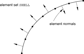 Defining single-sided surfacesYou can define a single-sided surface on the positive or negative face of structural, surface, or rigid elements. The positive face is defined as the one in the direction of the positive element normal, and the negative face is defined as the one in the direction opposite to the element normal. The definition of the element normal for all elements is given in About the element library. You must ensure that all of the specified elements have their normals oriented consistently. If they are oriented as shown in Figure 4, the surface normals will reverse direction as the surface is traversed and improper results may occur when the surface is used with features requiring an orientation such as distributed surface loads. Figure 4. Inconsistent orientation of structural element normals can result in