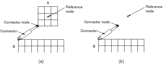 ![]() Part instance A is included in a display body definition. Figure 1(b) shows the same model without the display body. This model will actually be involved in the analysis. The connector node and reference node form a rigid body that represents the analysis version of part instance A. Both these nodes are assembly-level nodes and are not included in the display body. Input file templateThe following input shows how display bodies can be used in a model with rigid part instances and connectors: *ASSEMBLY ... *INSTANCE, NAME=INST1 ... *END INSTANCE *NODE, NSET=INST1-REFNODE 1001, -10, 0, 0 *NODE, NSET=INST1-CONNECTOR-NODE 1002, -5, -5, 0 *RIGID BODY, TIE NSET=INST1-CONNECTOR-NODE, REF NODE=INST1-REFNODE *DISPLAY BODY, INSTANCE=INST1 1001 ... *END ASSEMBLY |