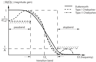 ![]() The Butterworth filter is very common; its response in the pass band is known as maximally flat. The Type I Chebyshev filter has a sharper transition between the pass band and the stop band, but it has a ripple in the pass band. The Type II Chebyshev filter also has a sharper transition between the pass band and the stop band than a Butterworth filter of the same order, but it has a ripple in the stop band. The higher the order of the filter, the narrower the transition band. However, the computational cost increases as the order increases. In addition, for high-order filters the phase lag, which is the time delay between the filtered and unfiltered signal, may become significant. For most applications filter orders of two or four are sufficiently accurate. To define a Butterworth filter, you must specify the cutoff frequency, , and the filter order, N. Since the implementation of the filters is done using cascades of second-order sections, Abaqus expects an even number for the filter order. If you specify an odd number for the order, the order will be increased internally to the next even number. The default value for the order is two, and the highest order that can be prescribed is twenty. For the Chebyshev filters you must also specify an additional parameter, the ripple factor. The ripple factor is equal to for a Type I Chebyshev filter and is equal to for a Type II Chebyshev filter (see Figure 5). No checks are performed to ensure that the cutoff frequency is appropriate; for example, Abaqus does not check that only the noise of the signal is eliminated. You need to know the range of the physical frequencies that are expected in the solution, and you must prescribe a cutoff frequency greater than these frequencies. In addition, the cutoff frequency should be less than half the sampling frequency; otherwise, no filtering is performed. Abaqus internally remaps (using a quadratic interpolation) the output raw data so that the filtering can satisfy the constant time-increment (sampling) requirement. You must assign each filter definition a name that can be used to refer to the filter from an output request. Input File Usage Use one of the following options to define a filter: FILTER, NAME=filter_name, TYPE=BUTTERWORTH FILTER, NAME=filter_name, TYPE=CHEBYS1 FILTER, NAME=filter_name, TYPE=CHEBYS2 Abaqus/CAE Usage Step module: Name: filter_name; Butterworth, Type I Chebyshev, or Type II Chebyshev: Start-up conditions for the filterBy default, the values of the variables at time zero (zero increment) are used as the initial conditions (or start-up conditions); however, you can change this initial value. Input File Usage Use the following option to use the default initial conditions: FILTER, NAME=filter_name, TYPE=filter_type, START CONDITION=DC Use the following option to specify the initial variable values: FILTER, NAME=filter_name, TYPE=filter_type, START CONDITION=USER DEFINED Abaqus/CAE Usage You cannot specify the initial variable values in Abaqus/CAE. Filtering using the low-pass Infinite Impulse Response filtersTo pre-filter element, nodal, contact, or integrated history output or element and nodal field output based on one of the low-pass Infinite Impulse Response filters that you defined, you refer to this filter by name from the output request. Input File Usage Use the following option to apply a filter to an output request: OUTPUT, FILTER=filter_name Abaqus/CAE Usage Step module: field or history output request editor: Apply filter: filter_name Filtering the output based on the time intervalFor history output you can request that Abaqus/Explicit create an antialiasing filter that is internally based on the time interval specified in the output request. The cutoff frequency is set internally to one-sixth of the time frequency (the time frequency is the inverse of the time interval, t, used for history output). If no time intervals are specified, the default number of history output intervals is used to create the cutoff frequency of the filter. You can also use antialiasing filters for a field output request, but in this case the cutoff frequency is set to one-sixth of a time frequency corresponding to two hundred time intervals per step if less than two hundred field frames are requested. If more than two hundred field frames are requested, the cutoff frequency is set to one-sixth of the requested time frequency. The antialiasing filter is a second-order Butterworth type and a filter definition is not required. Abaqus/Explicit does not check whether the specified time interval for history output provides an appropriate cutoff frequency to build the internal filter. You should know approximately how many data points are required to describe your history curve (or signal) accurately, and Abaqus/Explicit will give you the most physical (un-aliased) representation of the signal for that number of points. Similarly for field output Abaqus/Explicit does not check whether the cutoff corresponding to two hundred sampling intervals or more (if you request more than two hundred frames) is appropriate for your analysis. If a lower (or higher) cutoff frequency is needed, you should define the filter in the model data. Filtering field output or history output written at time intervalsYou can apply a filter to a field output request or a history output request written at intervals of time in your analysis. Input File Usage Use one of the following options: OUTPUT, FIELD, FILTER=ANTIALIASING, TIME INTERVAL=t OUTPUT, HISTORY, FILTER=ANTIALIASING, TIME INTERVAL=t Abaqus/CAE Usage Step module: field or history output request editor: Frequency: Every x units of time: t, Apply filter: Antialiasing Filtering field output written at evenly spaced intervals of timeYou can apply a filter to a field output request written at evenly spaced time intervals in your analysis. Input File Usage OUTPUT, FIELD, FILTER=ANTIALIASING, NUMBER INTERVAL=n Abaqus/CAE Usage Step module: field output request editor: