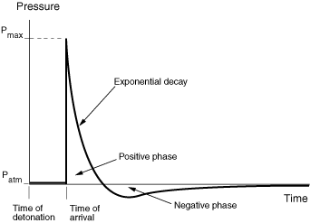 ![]() The CONWEP model uses a scaled distance based on the distance of the loading surface from the source of the explosion and the amount of explosive detonated. For a given scaled distance, the model provides the following empirical data: the maximum overpressure (above atmospheric), the arrival time, the positive phase duration, and the exponential decay coefficient for both the incident pressure and the reflected pressure. Using these parameters, the entire time history of both the incident pressure and reflected pressure as shown in Figure 3 can be constructed. Use of a standoff point is not required. The total pressure, , on a surface due to the blast wave is a function of the incident pressure, , the reflected pressure, , and the angle of incidence, , which is defined as the angle between the normal of the loading surface and the vector that points from the surface to the explosion source. The total pressure is defined as The air blast loading due to the total pressure can be scaled using a magnitude scale factor. A detonation time can be specified if the explosion does not occur at the start of the analysis. The detonation time needs to be given in total time; see Conventions for a description of the time convention. The arrival time at a location is defined as the elapsed time for the wave to arrive at that location after detonation. The CONWEP empirical data are given in a specific set of units, which must be converted to the units used in the analysis. You will need to specify multiplying factors for conversion of these units to SI units. For the specification of the mass of the explosive in TNT equivalence, you can choose any convenient mass unit, which can be different from the mass unit used in the analysis. For computation of the pressure loading, you will need to specify multiplying factors for conversion of length, time, and pressure units used in the analysis to SI units. Some typical conversion multiplier values are given in Table 3.