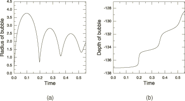 ![]() Defining a solution-dependent amplitude for superplastic forming analysisAbaqus/Standard can calculate amplitude values based on a solution-dependent variable. Choose the solution-dependent definition method to create a solution-dependent amplitude curve. The data consist of an initial value, a minimum value, and a maximum value. The amplitude starts with the initial value and is then modified based on the progress of the solution, subject to the minimum and maximum values. The maximum value is typically the controlling mechanism used to end the analysis. This method is used with creep strain rate control for superplastic forming analysis (see Rate-dependent plasticity: creep and swelling). Input File Usage AMPLITUDE, NAME=name, DEFINITION=SOLUTION DEPENDENT Abaqus/CAE Usage Load or Interaction module: Create Amplitude: Solution dependent Defining the bubble load amplitude for an underwater explosionTwo interfaces are available in Abaqus for applying incident wave loads (see Incident wave loading due to external sources). For either interface bubble dynamics can be described using a model internal to Abaqus. A description of this built-in mechanical model and the parameters that define the bubble behavior are discussed in Defining bubble loading for spherical incident wave loading. The related theoretical details are described in Loading due to an incident dilatational wave field. The preferred interface for incident wave loading due to an underwater explosion specifies bubble dynamics using the UNDEX charge property definition (see Defining bubble loading for spherical incident wave loading). The alternative interface for incident wave loading uses the bubble definition described in this section to define bubble load amplitude curves. An example of the bubble amplitude definition with the following input data is shown in Figure 7. Input File Usage AMPLITUDE, NAME=name, DEFINITION=BUBBLE Abaqus/CAE Usage Bubble amplitudes are not supported in Abaqus/CAE. However, bubble loading for an underwater explosion is supported in the Interaction module using the UNDEX charge property definition. Figure 7. Bubble amplitude definition example: (a) radius of bubble and (b)