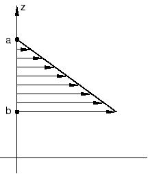 ![]() Such a model might be used to simulate a snow load on a flat roof. The snow load could be modeled as a distributed dead traction load . Let and S denote the total surface area of the plate in the reference and current configurations, respectively. With no constant resultant, the total integrated load on the plate, , is In this case a uniform traction leads to a resultant load that increases as the surface area of the plate increases, which is not consistent with a fixed snow load. With the constant resultant method, the total integrated load on the plate is In this case a uniform traction leads to a resultant that is equal to the pressure times the surface area in the reference configuration, which is more consistent with the problem at hand. Specifying pressure loadsDistributed pressure loads can be specified on any two-dimensional, three-dimensional, or axisymmetric elements. Hydrostatic pressure loads can be specified in Abaqus/Standard on two-dimensional, three-dimensional, and axisymmetric elements. Viscous and stagnation pressure loads can be specified in Abaqus/Explicit on any elements. Distributed pressure loadsDistributed pressure loads can be specified on any elements. For beam elements, a positive applied pressure results in a force vector acting along the particular local direction of the section or a global direction, whichever is specified. For conventional shell elements, the force vector points along the element SPOS normal. For continuum solid or a continuum shell elements with the distributed load on an explicitly identified facet, the force vector acts against the outward normal of that facet. Distributed pressure loads are not supported for pipe and elbow elements. Distributed pressure loads can be specified on a surface formed over elements; a positive applied pressure results in a force vector acting against the local surface normal. Input File Usage Use one of the following options to define a pressure load: DLOAD element number or element set, load type label, magnitude where load type label is Pn, P, PnNU, or PNU. DSLOAD surface name, P or PNU, magnitude Abaqus/CAE Usage Use the following input to define an element-based pressure load: Load module: Create Load: choose Mechanical for the Category and Pressure for the Types for Selected Step: Distribution: select an analytical field or a discrete field Use the following input to define a surface-based pressure load: Load module: Create Load: choose Mechanical for the Category and Pressure for the Types for Selected Step: Uniform or User-defined Nonuniform element-based pressure loads are not supported in Abaqus/CAE. Hydrostatic pressure loads on two-dimensional, three-dimensional, and axisymmetric elements in Abaqus/StandardTo define hydrostatic pressure in Abaqus/Standard, give the Z-coordinates of the zero pressure level (point a in Figure 5) and the level at which the hydrostatic pressure is defined (point b in Figure 5) in an element-based or surface-based distributed load definition. For levels above the zero pressure level, the hydrostatic pressure is zero. Figure 5. Hydrostatic pressure distribution.