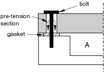 ![]() Container A is sealed by pre-tensioning the bolts that hold the lid, which places the gasket under pressure. This pre-tensioning is simulated in Abaqus/Standard by adding a “cutting surface,” or pre-tension section, in the bolt, as shown in Figure 1, and subjecting it to a tensile load. By modifying the elements on one side of the surface, Abaqus/Standard can automatically adjust the length of the bolt at the pre-tension section to achieve the prescribed amount of pre-tension. In later steps further length changes can be prevented so that the bolt acts as a standard, deformable component responding to other loadings on the assembly. Modeling an assembly loadAbaqus/Standard allows you to prescribe assembly loads across fasteners that are modeled by continuum, truss, or beam elements. The steps needed to model an assembly load vary slightly depending on the type of elements used to model the fasteners. Modeling a fastener with continuum elementsIn continuum elements the pre-tension section is defined as a surface inside the fastener that “cuts” it into two parts (see Figure 2). The pre-tension section can be a group of surfaces for cases where a fastener is composed of several segments. Figure 2. Pre-tension section defined using continuum elements.