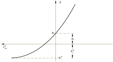 ProductsAbaqus/Standard There are two types of porous elasticity models present in Abaqus/Standard: the logarithmic porous elasticity model and the power-law based porous elasticity model. Logarithmic porous elasticity modelThe model is based on the experimental observation that in porous materials during elastic (recoverable) straining, the change in the void ratio—e—and the change in the logarithm of the equivalent pressure stress—p—defined as are linearly related, so that in rate form, where is a material parameter. In this form the material has zero tensile strength. If the tensile strength is nonzero, the equivalent relation is which includes the special case of zero tensile strength (). It can be shown that, if the compressibility of the solid material is neglected, the volume change of a material sample is where is the initial void ratio. If we define the elastic void ratio from the elastic volume change according to the relationship and then integrate the linear relation, the volumetric elasticity relationship is where is the initial pressure stress, prescribed by initial conditions. Note that for a zero tensile strength material it is required that . This equation can be inverted to yield as illustrated inFigure 1. Figure 1. Porous elastic volumetric behavior.