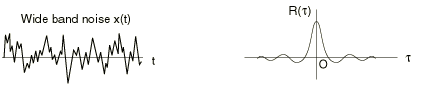 ![]() The most extreme wide band random function would have an autocorrelation that is just a delta function: Such a function is called white noise. White noise has the same amplitude at all frequencies, and its autocorrelation is zero except at . Figure 3. Autocorrelation of white noise.