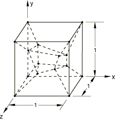 Problem descriptionMaterial:Linear elastic, Young's modulus = 1.0 × 106, Poisson's ratio = 0.25. For coupled temperature-displacement elements dummy thermal properties are prescribed to complete the material definition. Loading for Step 1Displacement boundary conditions at all exterior nodes: 10−3(2)/2, 10−3( 2)/2, 10−3( 2z)/2. In the Abaqus/Explicit simulations this step is followed by an intermediate step in which the model is returned to its unloaded state. Loading for Step 2Uniform pressure load: 10000. (Rigid body motion is constrained.) Loading for Step 3Displacement boundary conditions at all exterior nodes: 10−3(2)/2, 10−3( 2)/2, 10−3( 2z)/2, where x, y, and z are the coordinates of the undeformed geometry. In the Abaqus/Standard simulations this step is defined as a perturbation step; in the Abaqus/Explicit simulations a velocity boundary condition that gives rise to the perturbation is specified instead. Reference solutionThe analytical results for each step are presented below. Step 1: PERTURBATION