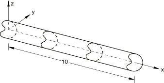 Problem descriptionModel:Area, A = 0.01. Material:Linear elastic, Young's modulus = 30.0 × 106, Poisson's ratio = 0.3. Loading and boundary conditions for Step 10.0 at 0, 0.0 at 10; displacement boundary conditions applied at the end nodes: 0.01 + 0.01x. Loading and boundary conditions for Step 2The node at 0 is fixed; 0 at 10; concentrated load at the free end: 3000. Loading and boundary conditions for Step 30.0 at 0, 0.0 at 10; displacement boundary conditions applied at the end nodes: 0.01 + 0.01x, where x is the value of the coordinates in the undeformed geometry. Loading and boundary conditions for Abaqus/ExplicitThe node at 0 is fixed; 0 at 10; concentrated load at the free end: 3000 using a smooth step amplitude definition. Solution is computed at time 1.0, including geometric nonlinearity. Reference solutionThe analytical results for each step are presented below. Step 1: PERTURBATIONSection forces: axial force 3000; tip displacement: 1.0 × 10−1. Step 2: NLGEOMSection forces: axial force 3000; tip displacement: 1.005 × 10−1. Step 3: PERTURBATIONSection forces: axial force 2970; tip displacement: 9.90 × 10−2. Dynamic Step in Abaqus/Explicit:Section forces: axial force 3000; tip displacement: 1.005 × 10−1. Results and discussionAll elements yield exact solutions except the cubic beams, which differ from the analytical solution by about 2% for the NLGEOM step and the subsequent perturbation step. The elements are recommended only for linear analysis. The results for pipe elements in Abaqus/Explicit are the same as those in Abaqus/Standard. Input files