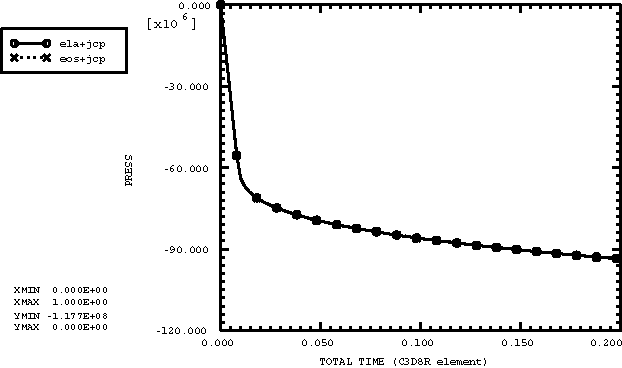 ![]() Figure 3. Pressure stress in uniaxial compression: elastic response versus