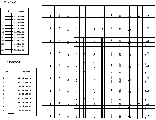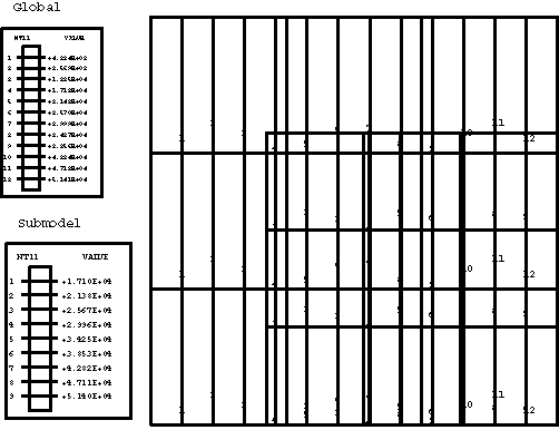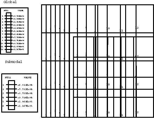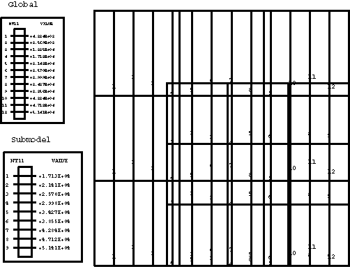 ![]() Figure 2. contours in global and submodels: 4-node plane stress.