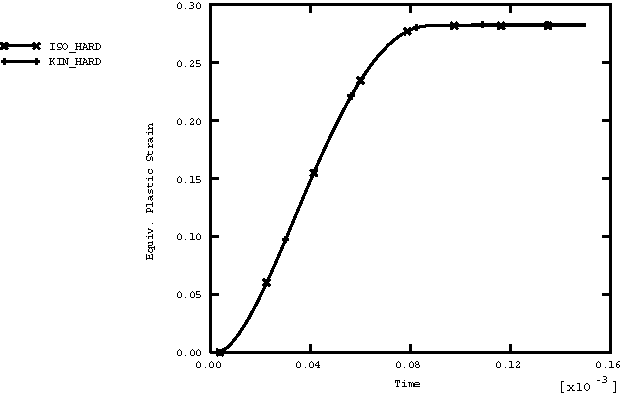 ![]() Figure 3. Equivalent plastic strain versus time for the two-dimensional