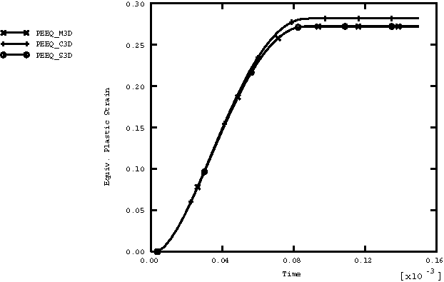 ![]() Figure 7. Equivalent plastic strain versus time for the three-dimensional