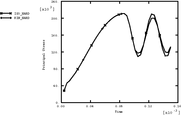 ![]() Figure 2. Maximum principal stress versus time for the two-dimensional