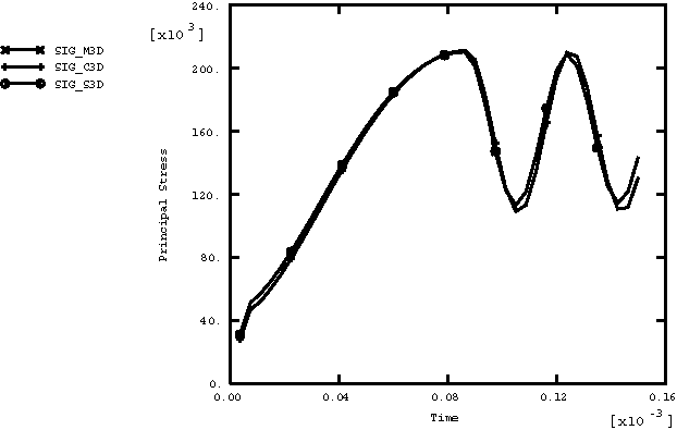 ![]() Figure 6. Maximum principal stress versus time for the three-dimensional